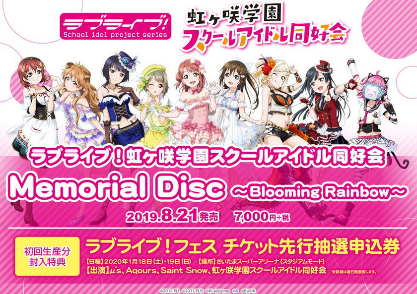 ラブライブ!のイベントBD「虹ヶ咲学園スクールアイドル同好会 Memorial Disc ~Blooming Rainbow~」が予約開始!フェス抽選券が封入