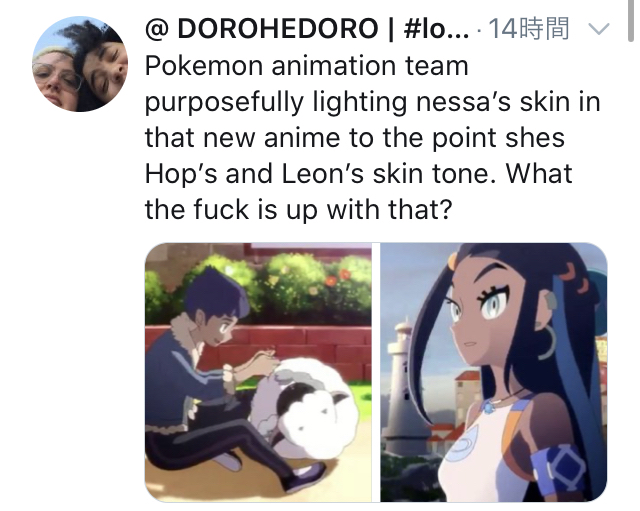 【画像】黒人さん、ポケモン剣盾のアニメでルリナが白人みたいになっていて激怒