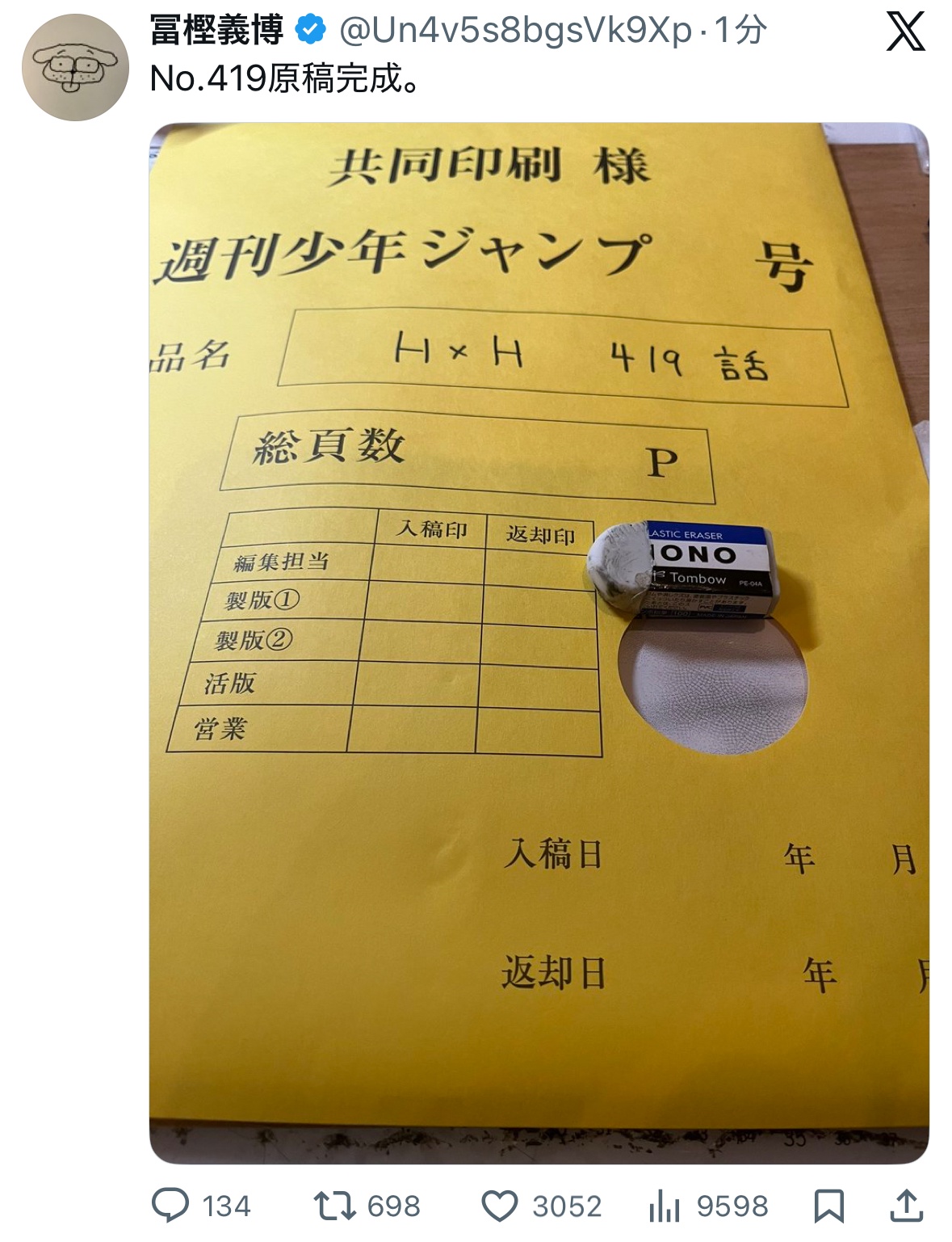 【朗報】ハンタ冨樫、またまた原稿を完成させるwwww