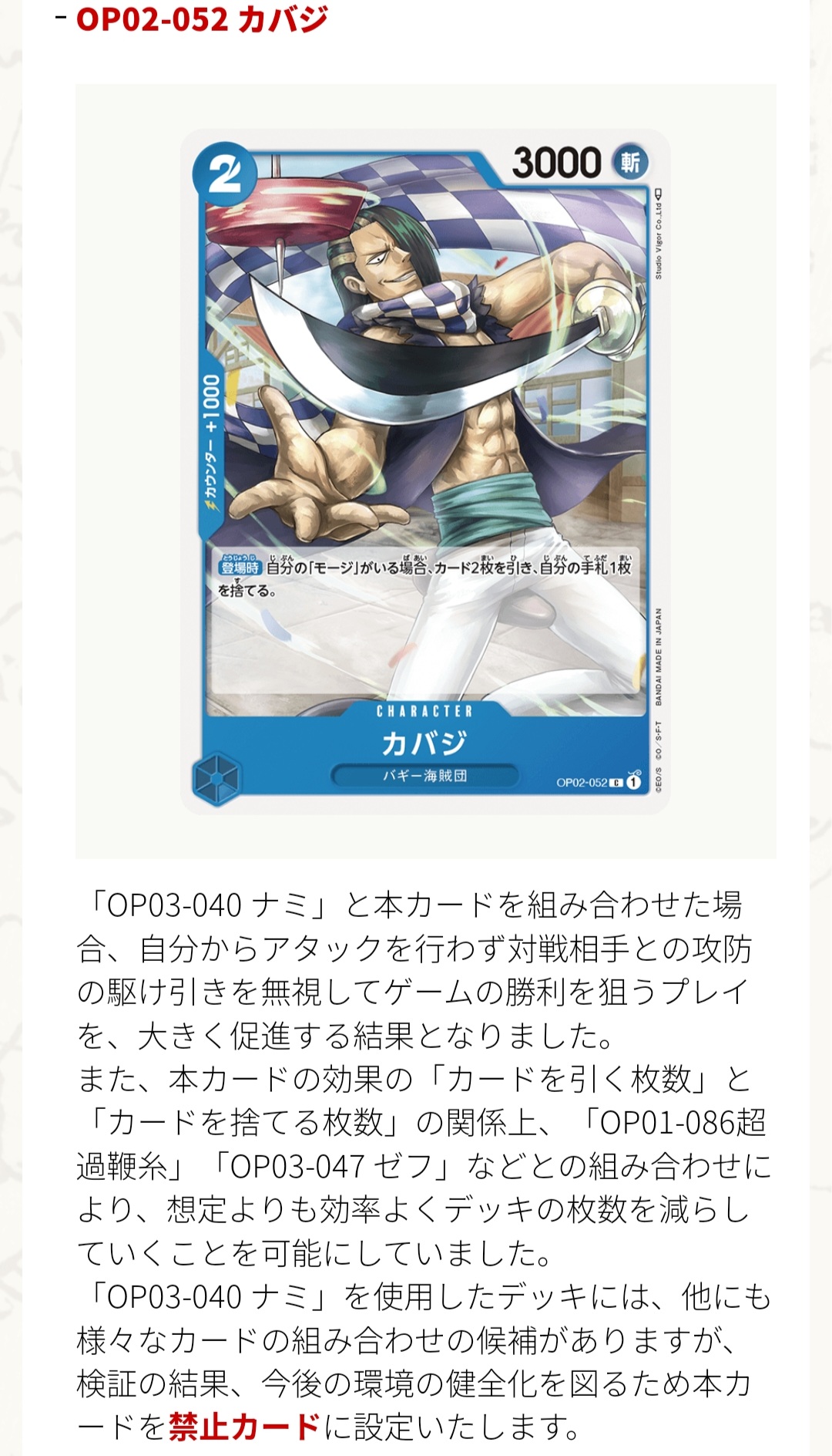 【悲報】ワンピースのカードゲーム、あのキャラが禁止カードになってしまうwww
