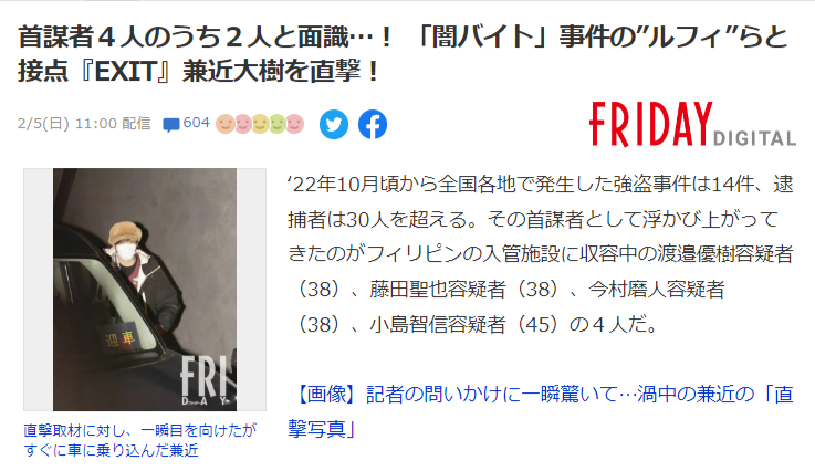 【悲報】EXIT兼近、週刊誌の最新リークでルフィ強盗団からの『昔の扱い』をバラされてしまうwwwww