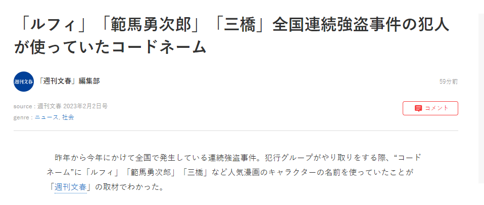 【悲報】全国で相次ぐ強盗事件、指示役は「ルフィ」だった…