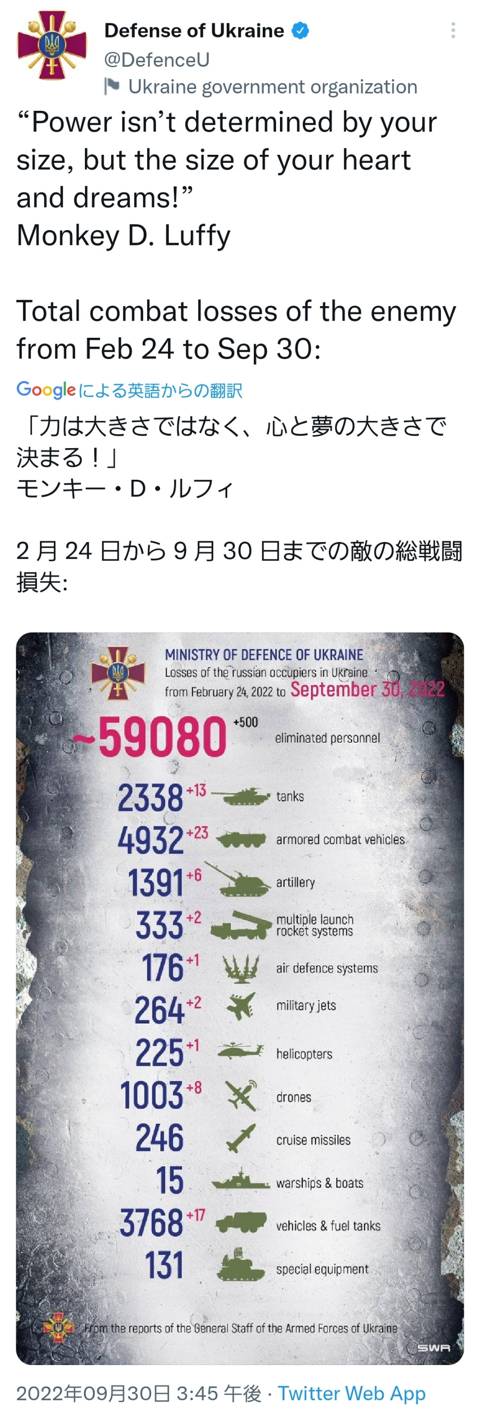 【画像】ウクライナ国防、漫画『ワンピース』の名言を引用!…こんなセリフあったっけ?w
