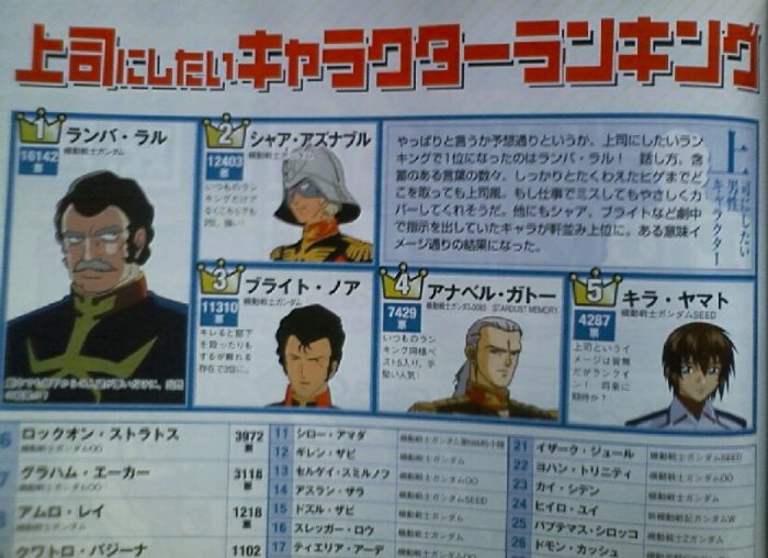 10年前の上司にしたいガンダムキャラランキング見つけた