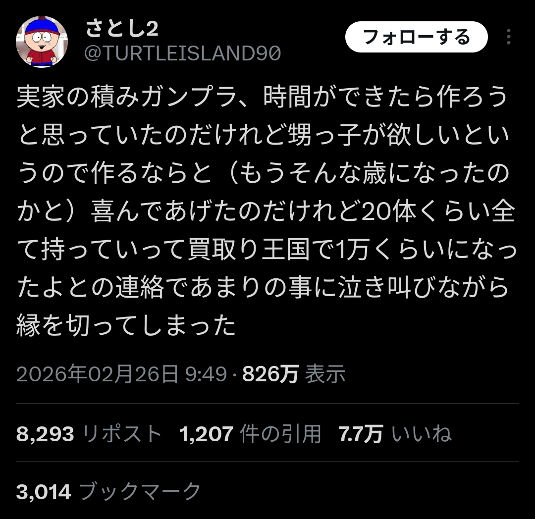 【悲報】甥っ子「ガンプラ頂戴」積みプラおじさん「いいよ」→全て売却されおじさんブチ切れ「絶縁した」