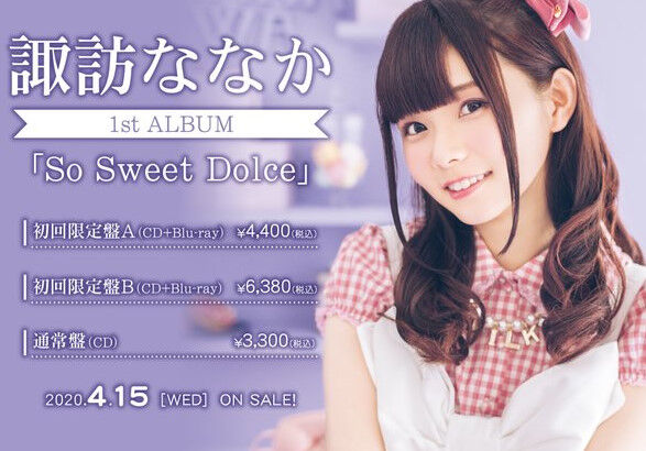 声優・諏訪ななか1stアルバム「So Sweet Dolce」予約開始!全10曲が収録予定