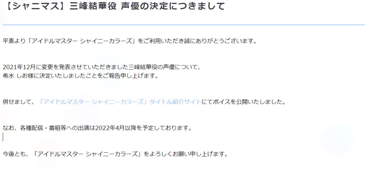 【朗報】炎上したシャニマス声優の『後継者』、遂に決まるwwww