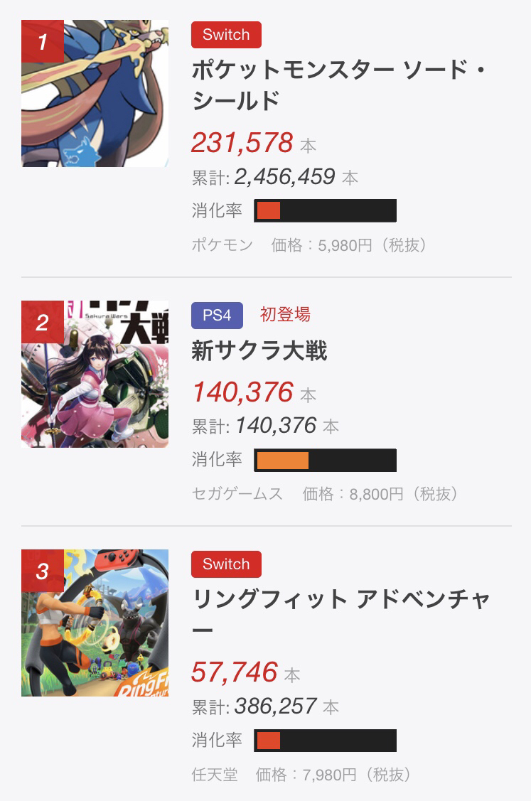 Switch 291,485 PS4 107,313 3DS 3,316 XboxOne 226 Vita 38