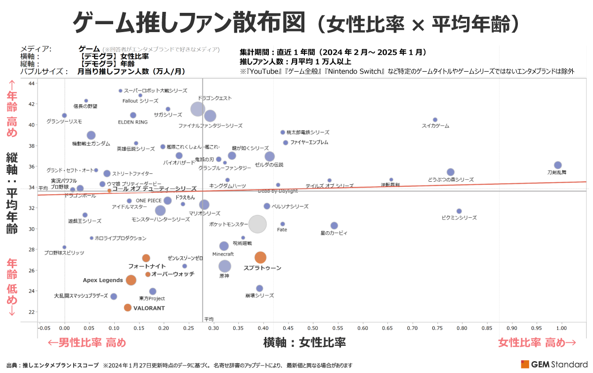 【画像】2025年人気ゲームの「女性比率」と「平均年齢」が明らかになるwwww