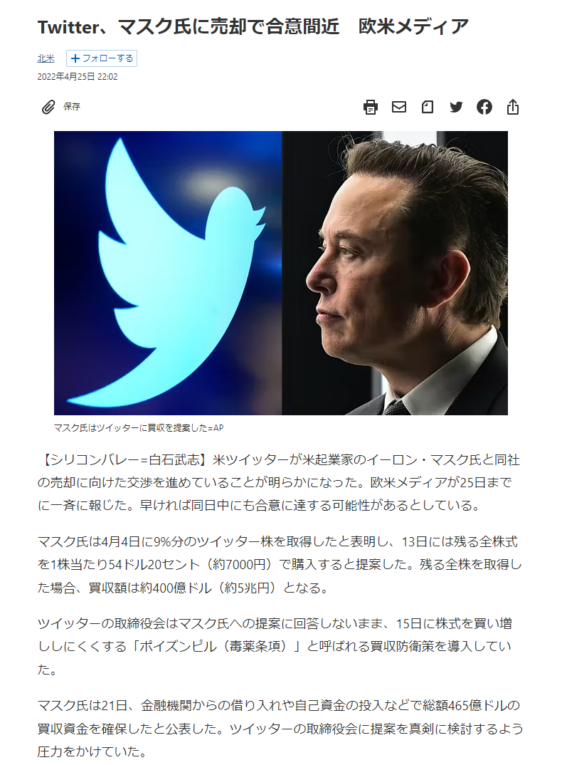 Twitterさん、イーロン・マスクに買収されるwww