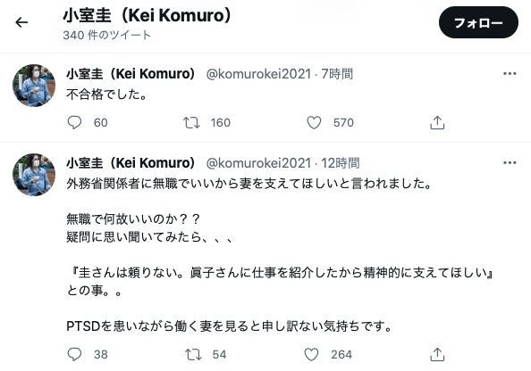 【悲報】Twitterに現れた謎のコムケイ「不合格でした。」