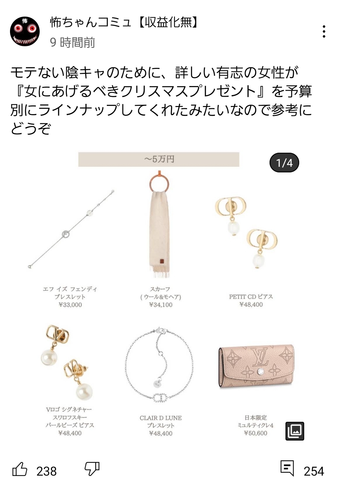 【画像】Twitter女さん「モテない陰キャのために『予算別』クリスマスプレゼントをラインナップしたよ!」→結果wwww