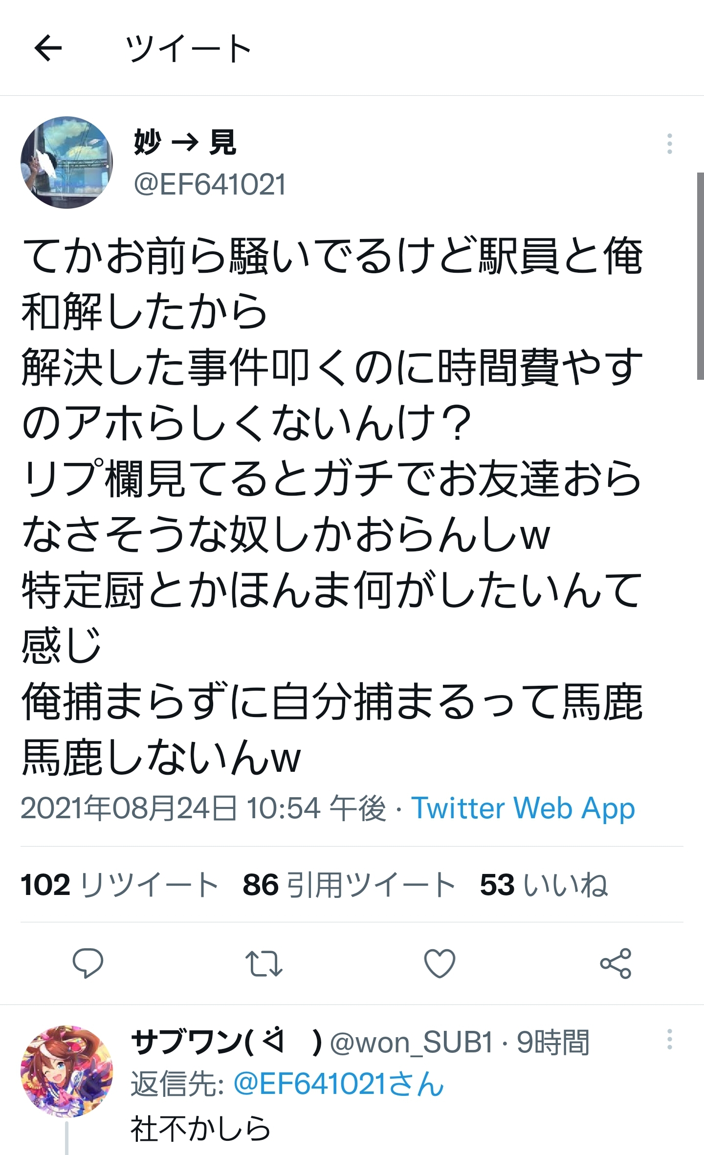 【画像】駅員の胸ぐらを掴み逃走した撮り鉄、Twitterでイキリ逆ギレ