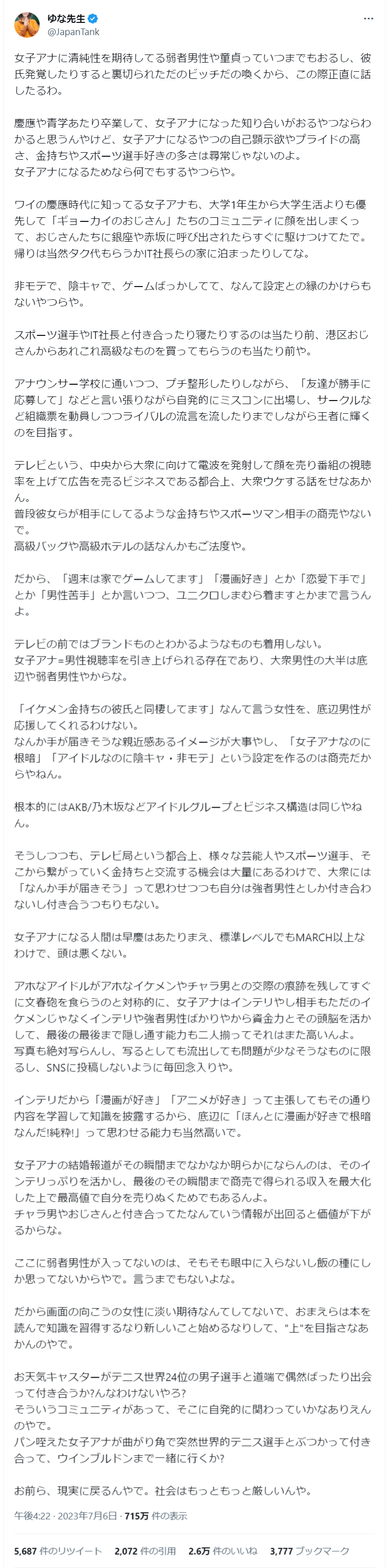 【悲報】弱者男性に説教垂れたいTwitter民、1793文字に渡る怒涛のお気持ちツイートをしてしまうwwwww