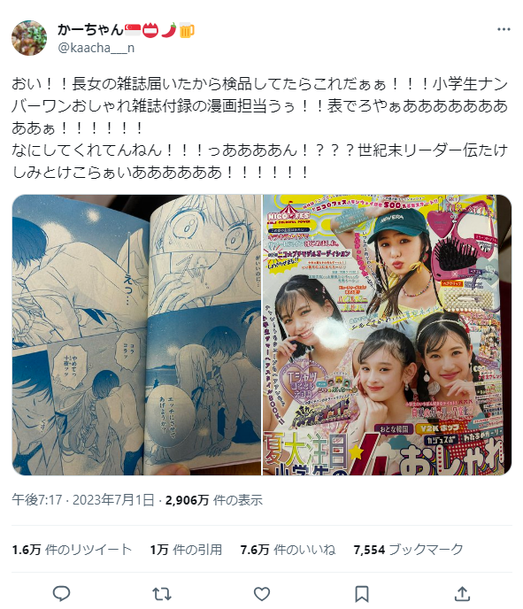 【悲報】Twitterママ「イヤァァァァ!娘の雑誌に掲載されてる漫画がいやらしすぎるぅぅぅぅぅ!!!」