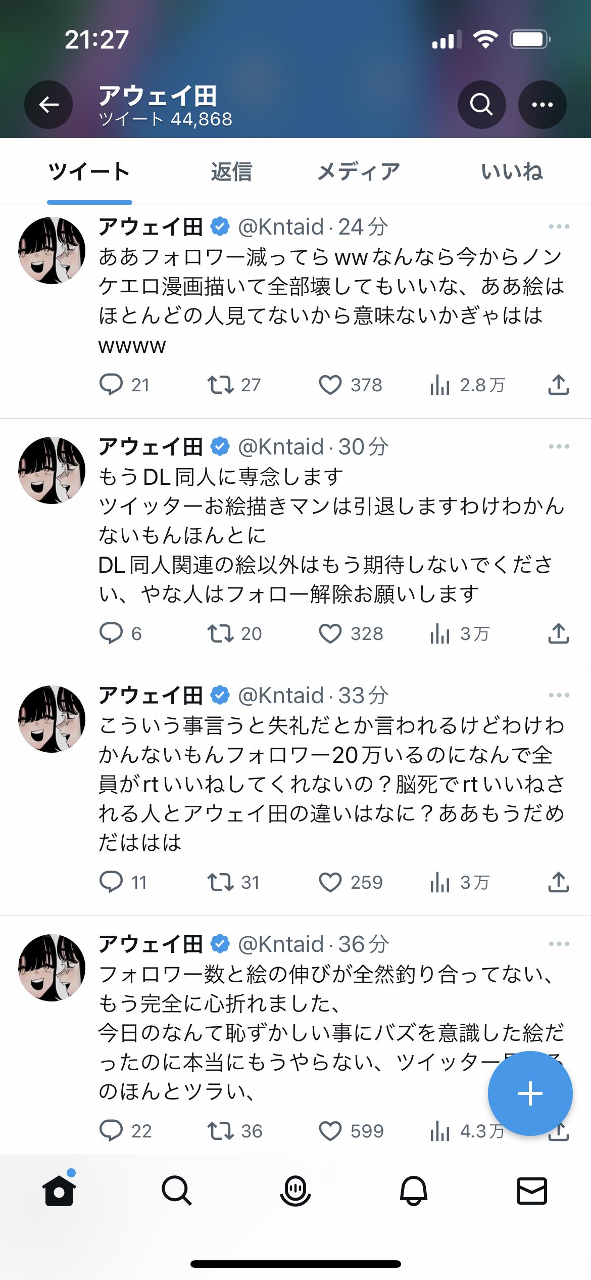 【悲報】有名Twitter漫画家、絵を載せるもいいねが少な過ぎてぶっ壊れて引退へ