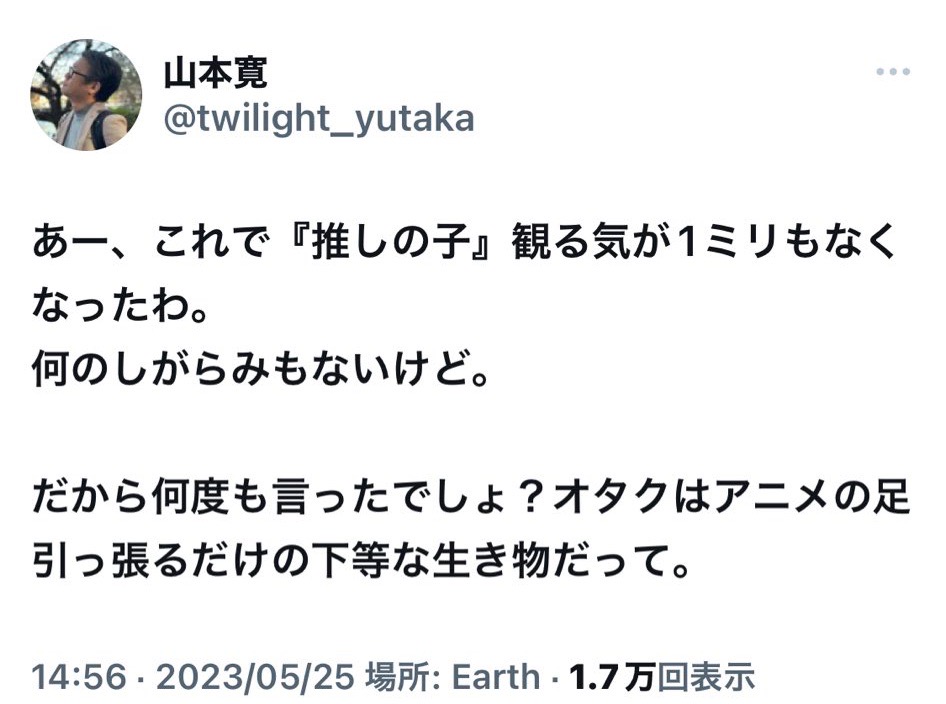 【悲報】「推しの子」炎上騒動についてツイートした大物アニメ監督、Twitterが凍結されてしまうwww