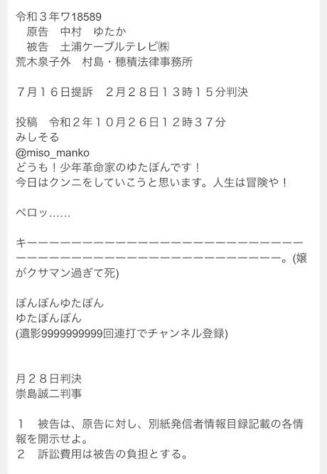 【悲報】Twitter民、ゆたぼんに『開示請求』される。とんでもない文章投稿してて草wwwww