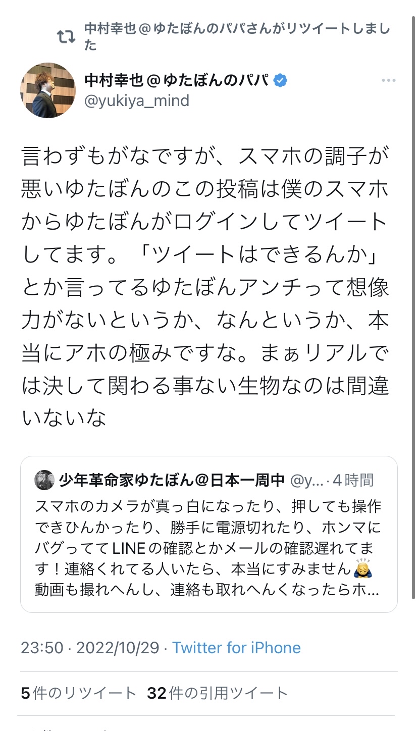 【悲報】ゆたぼん父、騒動に回答「ゆたぼんは僕のスマホでツイートしてます。アンチは想像力がない。本当にアホの極み」