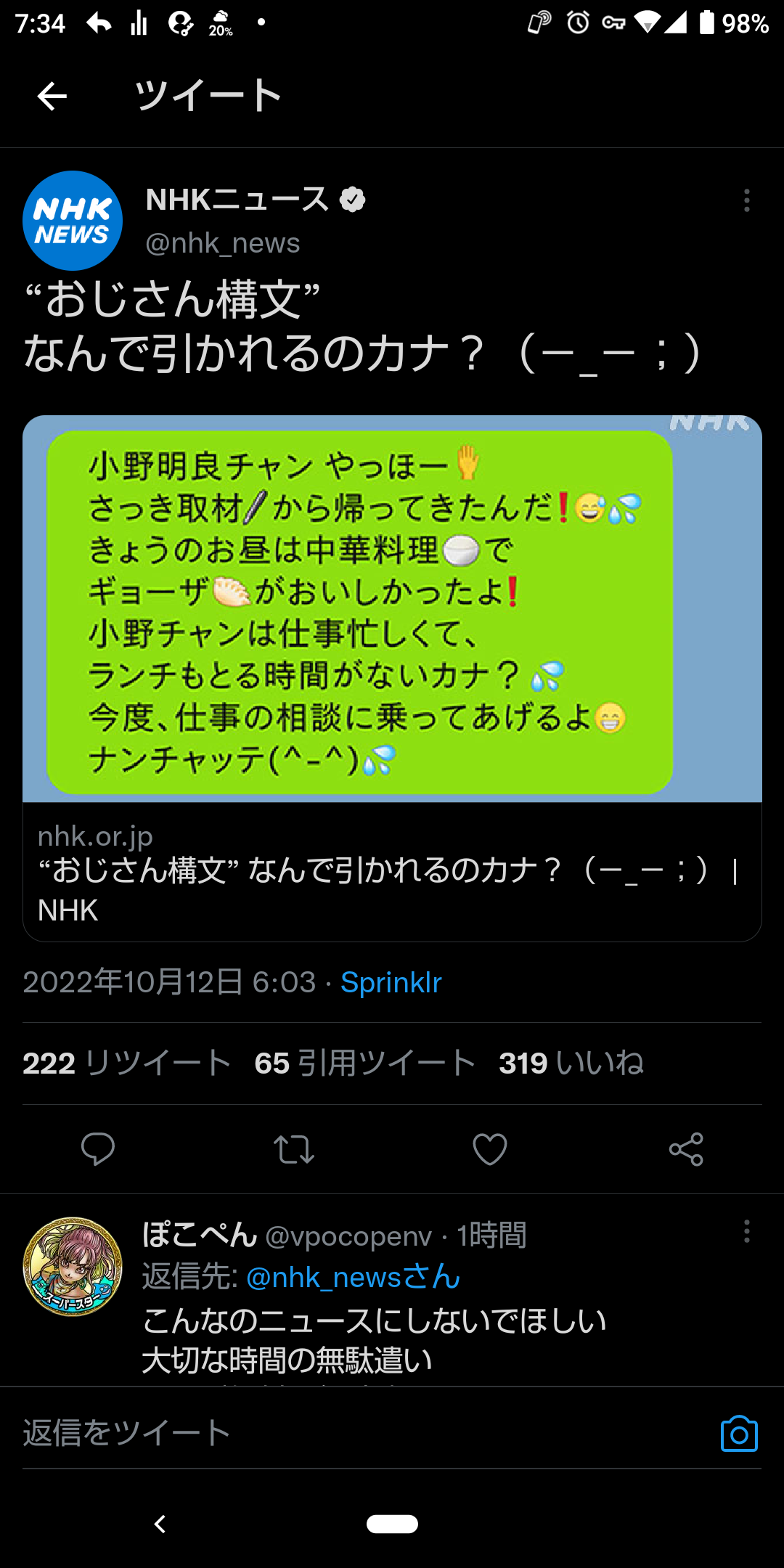 【悲報】NHK公式Twitter、おじさん構文のニュースを取上げてボロクソに叩かれるwwwwww