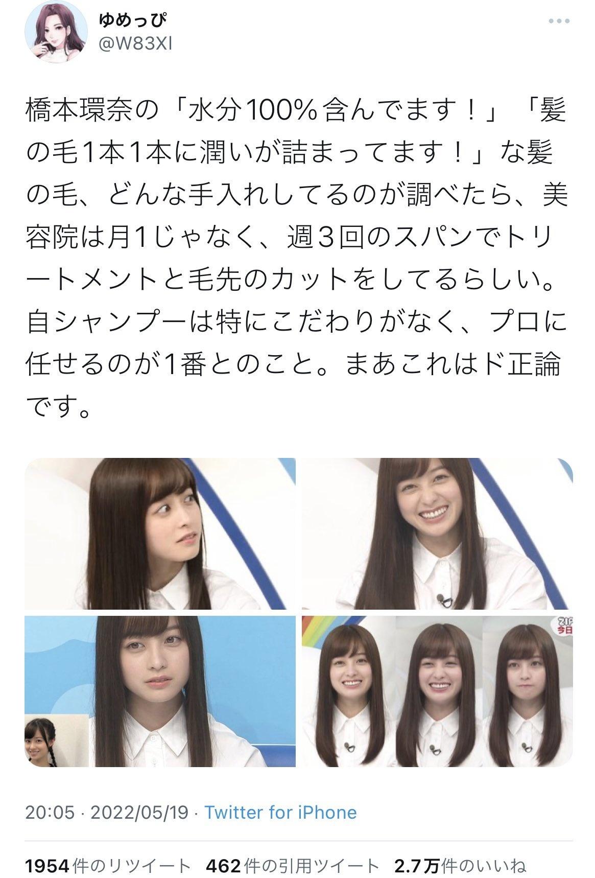 美容系Twitter民「橋本環奈は週3美容院行ってるらしい!」→橋本環奈「2ヶ月ぶりに美容院行ってきた!週3回も行けるかいな!w」→鍵垢逃亡