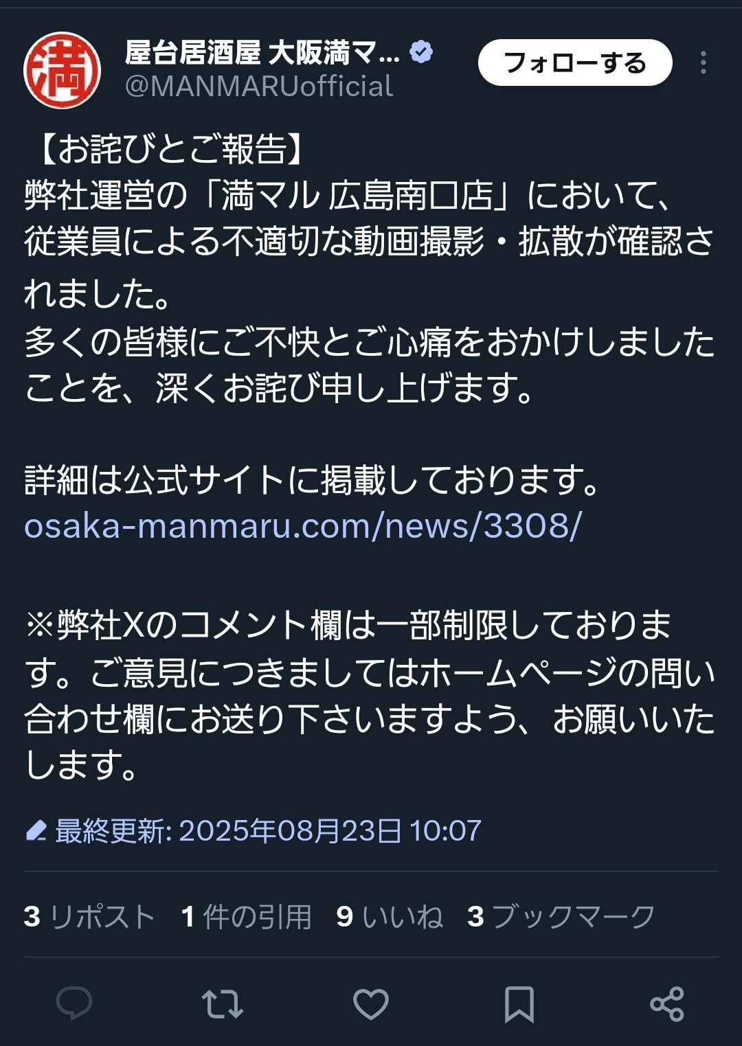 【悲報】広陵高校を揶揄した動画で炎上の居酒屋、お気持ち表明するwwww