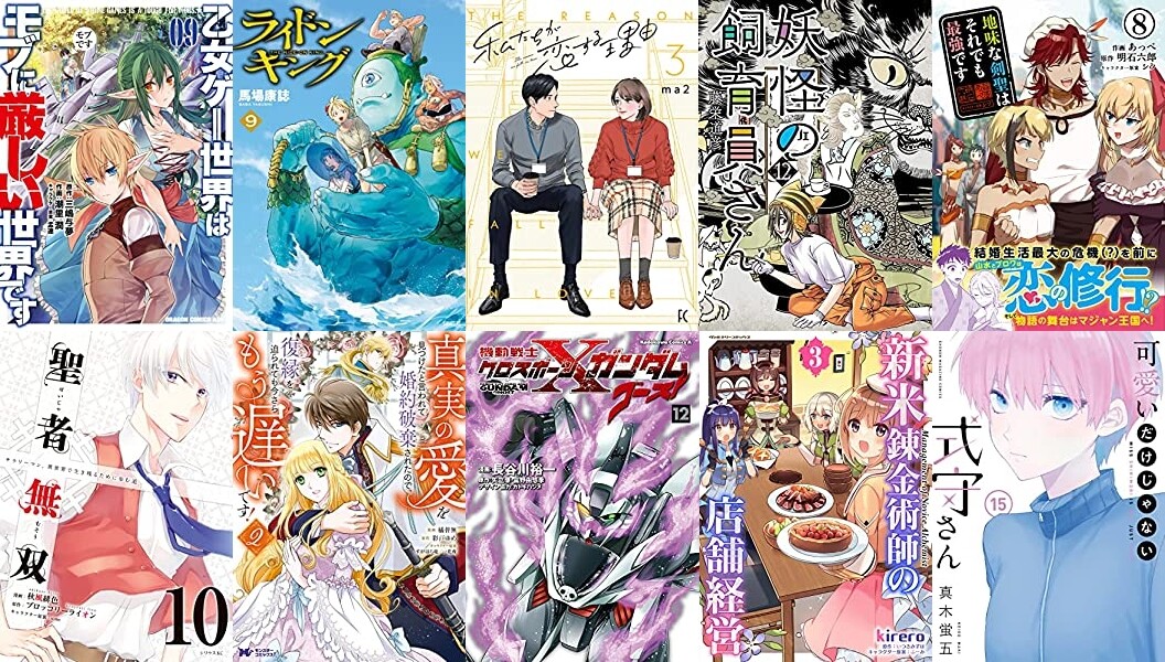 マンガ新刊:10月7日は「モブせか 9」「蜘蛛ですが、なにか?12」「ライドンキング 9」「可愛いだけじゃない式守さん 15」「私たちが恋する理由 3」など500冊以上