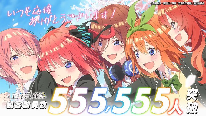 アニメ映画「五等分の花嫁」興行収入10億円、観客動員555,555人突破