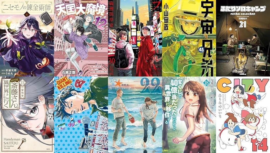 マンガ新刊:7月23日は「ニセモノの錬金術師 4」「天国大魔境 12」「フラジャイル 30」「宇宙兄弟 45」「ふたりソロキャンプ 21」「便利屋斎藤さん、異世界に行く 13」など