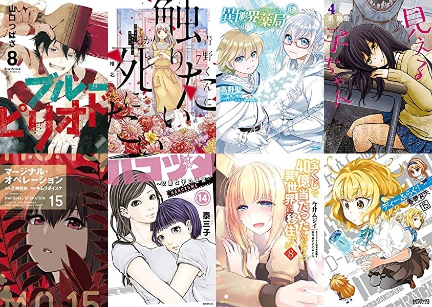 マンガ新刊:9月23日は「ブルーピリオド 8」「>青野くんに触りたいから死にたい 7」「異世界薬局 6」「見える子ちゃん 4」など140冊以上