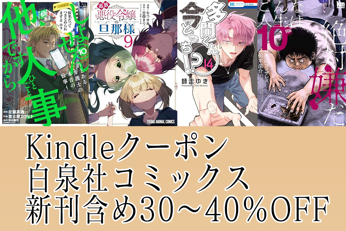 「しょせん他人事ですから」「追放悪役令嬢の旦那様」など対象!Kindleで秋田書店コミックス値引き30~40%OFFクーポン 「多聞くん今どっち!」なども(3/26まで?)