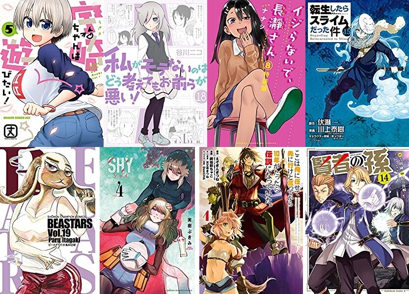 マンガ新刊:7月9日は「宇崎ちゃんは遊びたい! 5」「イジらないで、長瀞さん 8」「転生したらスライムだった件 15」など110冊以上