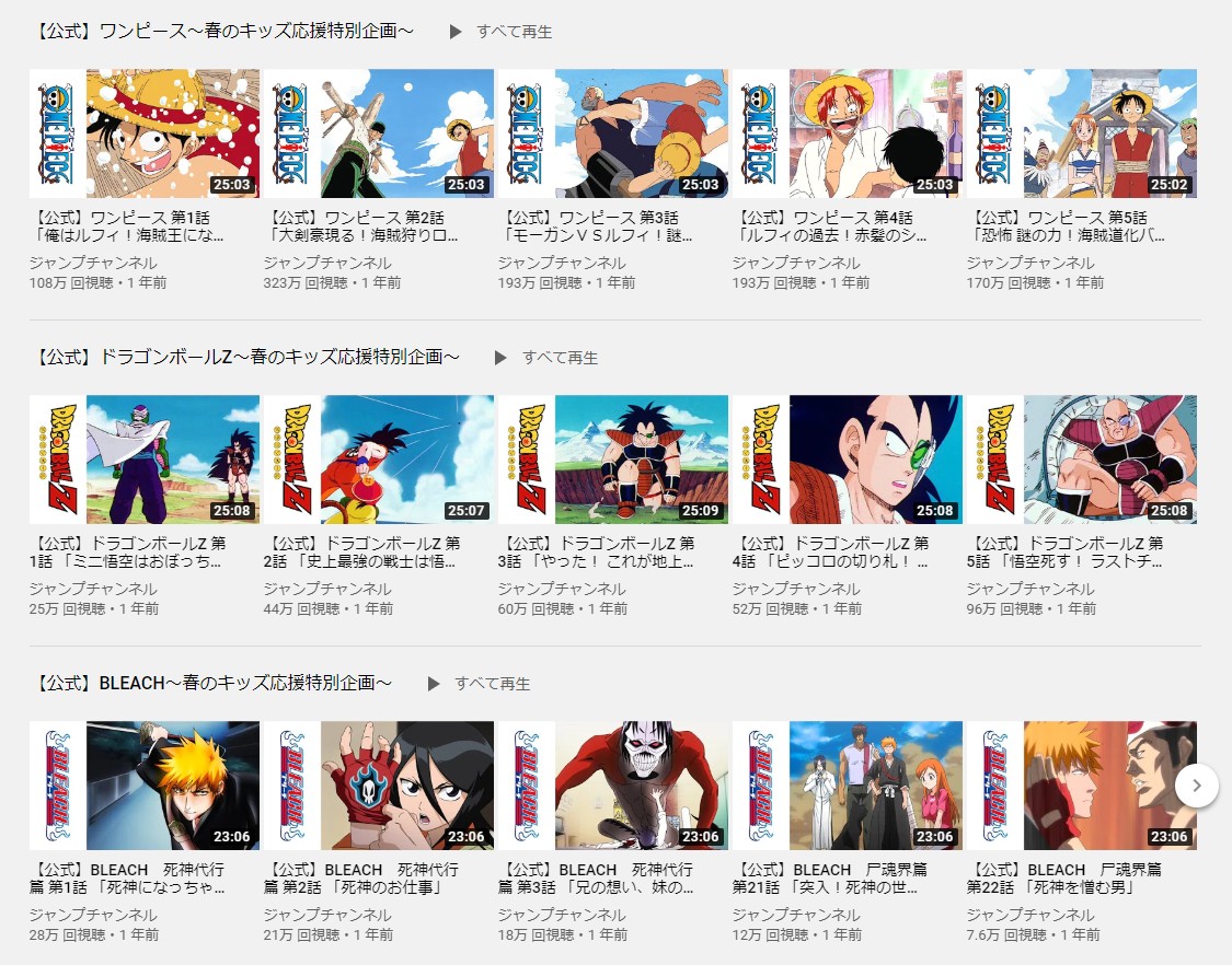 ジャンプアニメがYouTubeで!4月19日まで多数のジャンプ歴代作品アニメを無料配信