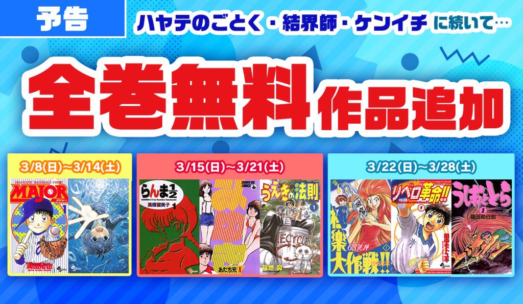 「MAJOR」「GS美神」「うしおととら」全巻無料!サンデーうぇぶりで一大マンガキャンペーン開催中