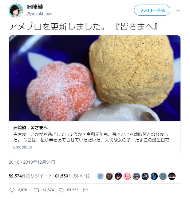 声優・洲崎綾さんが結婚を報告「これから夫婦二人三脚で、明るい家庭を築いていけたら」