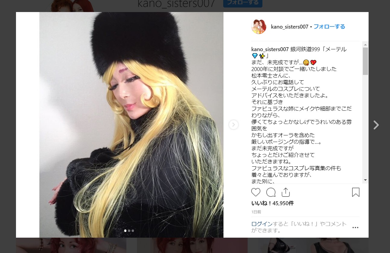 叶姉妹・美香さんが新たなコスプレ姿を公開 松本零士さんに「アドバイスをいただきましたよ」