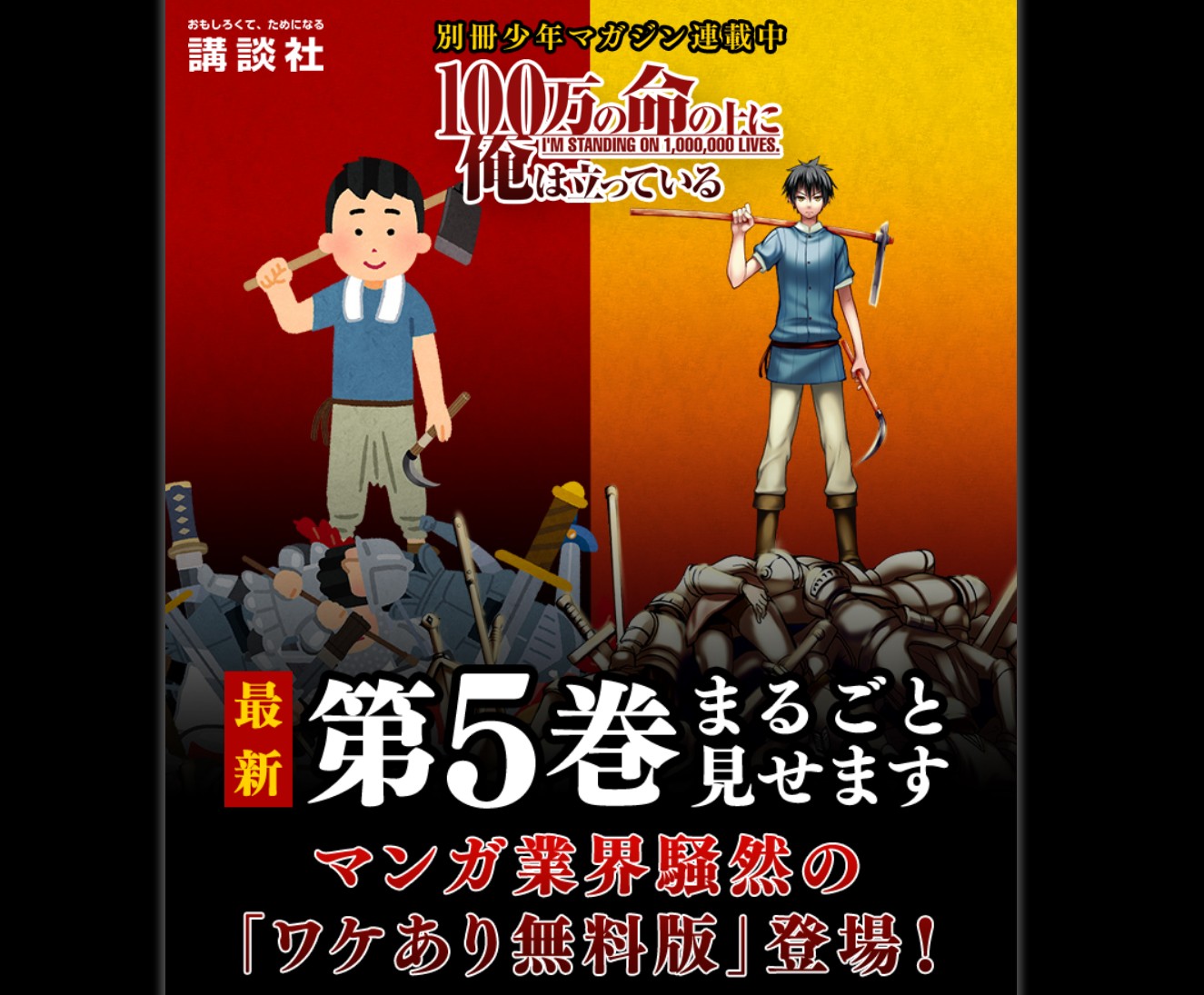 「いらすとや」が漫画に!『100万の命の上に俺は立っている』5巻がまるごとフリーイラスト差し替えで無料配信!