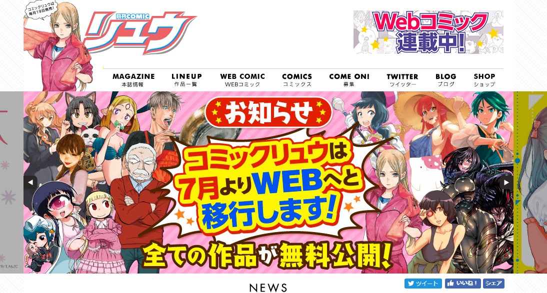 アニメ化多数の漫画雑誌が休刊 「COMICリュウ」今後はWEBで