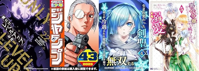 マンガ新刊:9月23日は「俺だけレベルアップな件 22」「週刊少年ジャンプ 2025年43号」「生まれ変わった剣聖、剣士が冷遇される魔術至上主義の学園で無双する 4」など