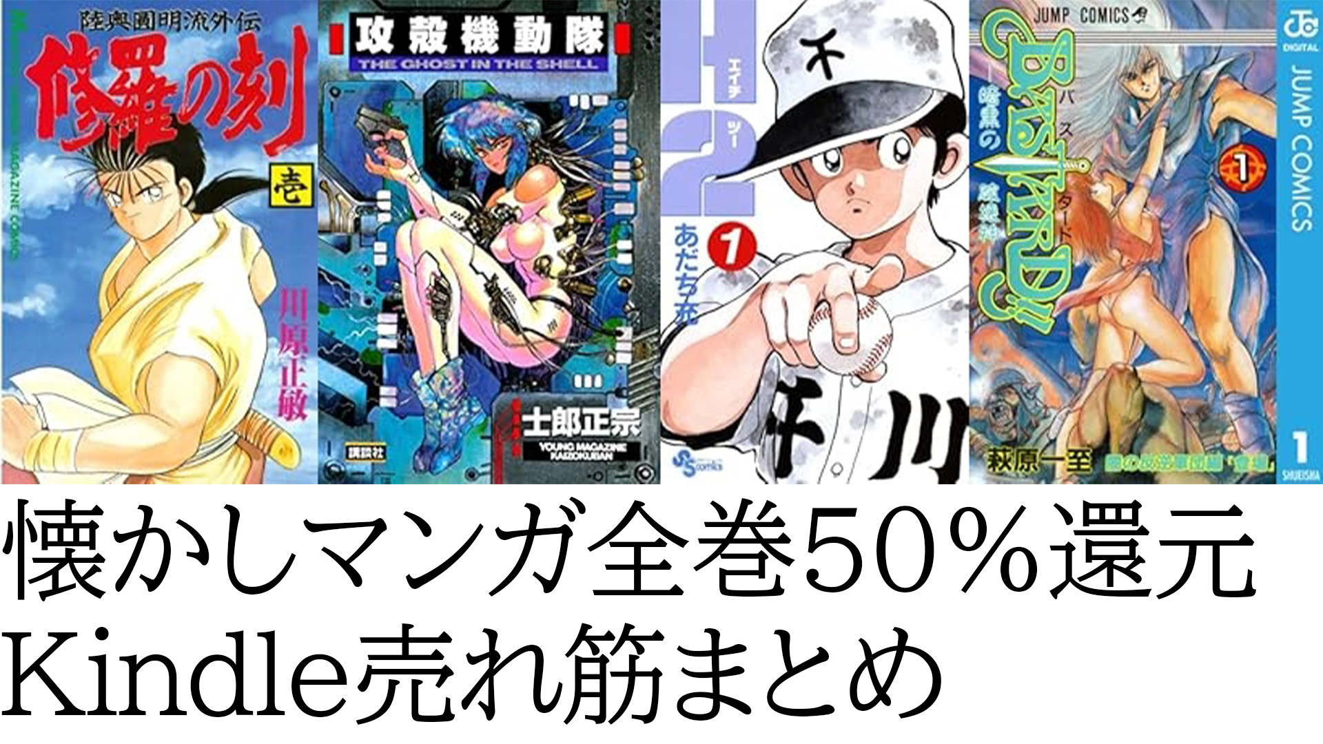 Kindleで講談社 名作コミックスが全巻50%ポイント還元!「はじめの一歩」「修羅の刻」「攻殻機動隊」「GTO」「頭文字D」などが実質半額!