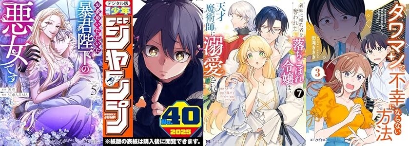 マンガ新刊:9月2日は「お求めいただいた暴君陛下の悪女です 5」「週刊少年ジャンプ」「タワマンで不幸にならない方法 3」など