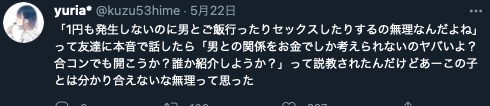 【画像】まんさん「現金なしで男とセックスするの無理って話したら説教された。この子は分かり合えない無理」
