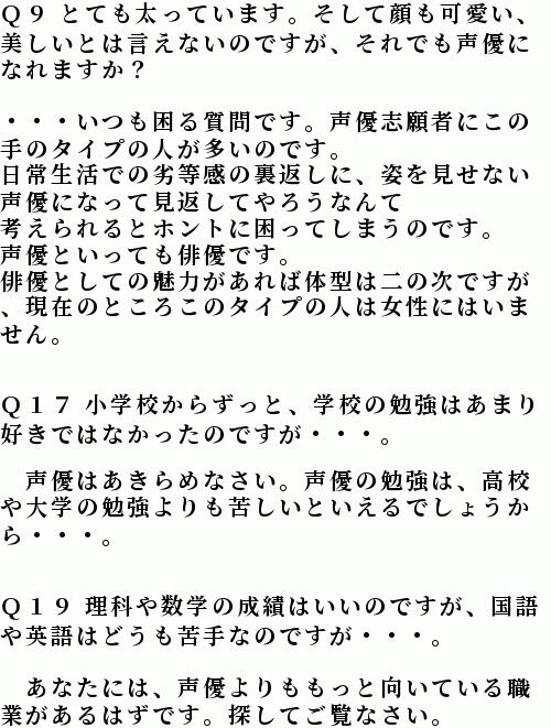 声優志望「太ってて可愛くなくても声優になれますか?」養成所「いつも困る質問です」