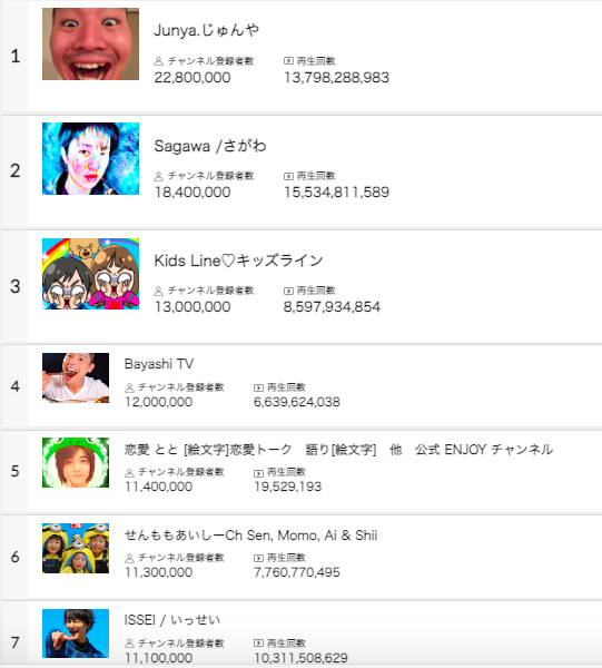 日本人Youtuber登録者数ランキング、ガチ誰もわからない HIKAKINどこ?