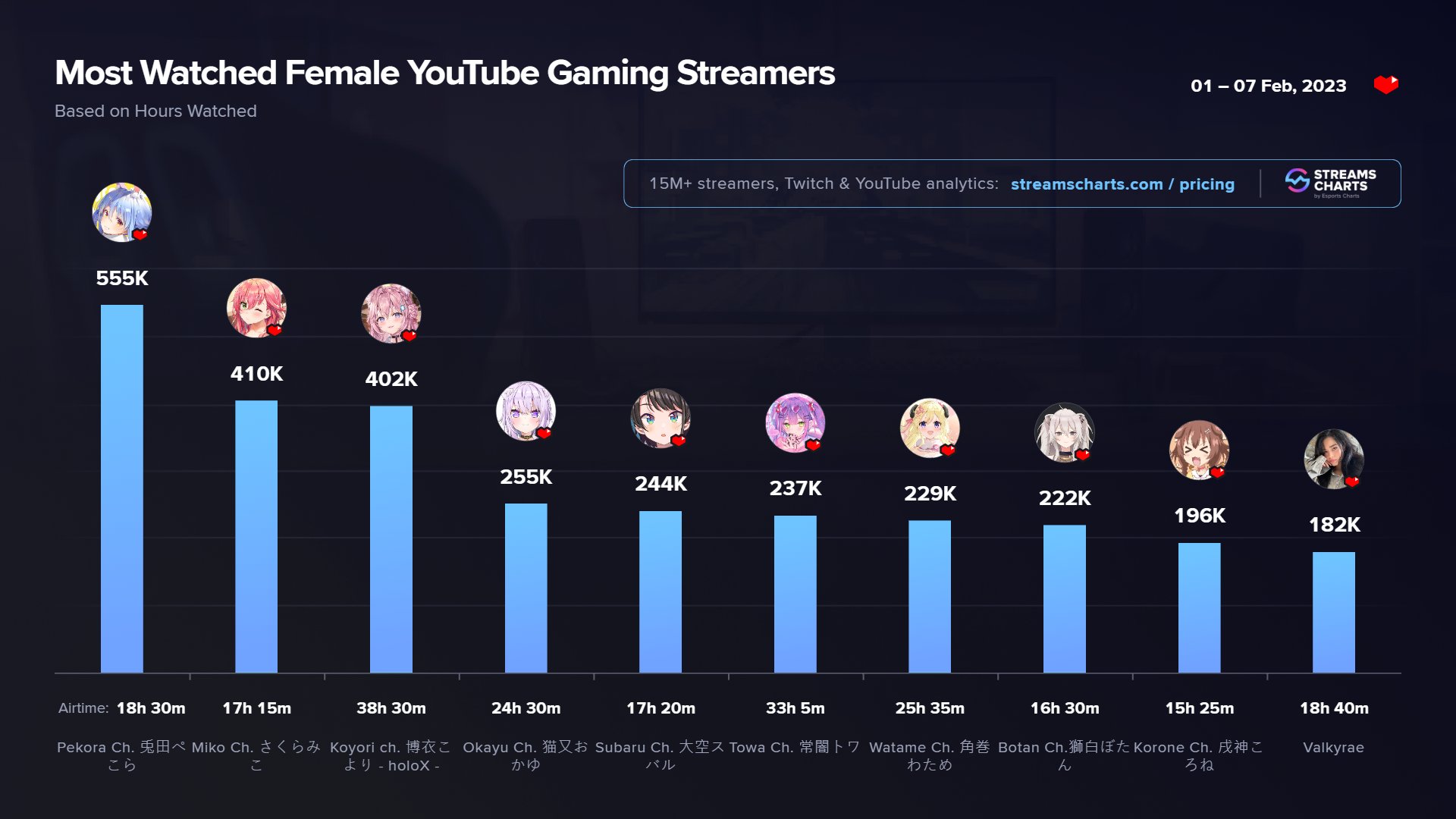 【画像】配信者の世界ランキング、Vtuberで殆ど占められてしまう