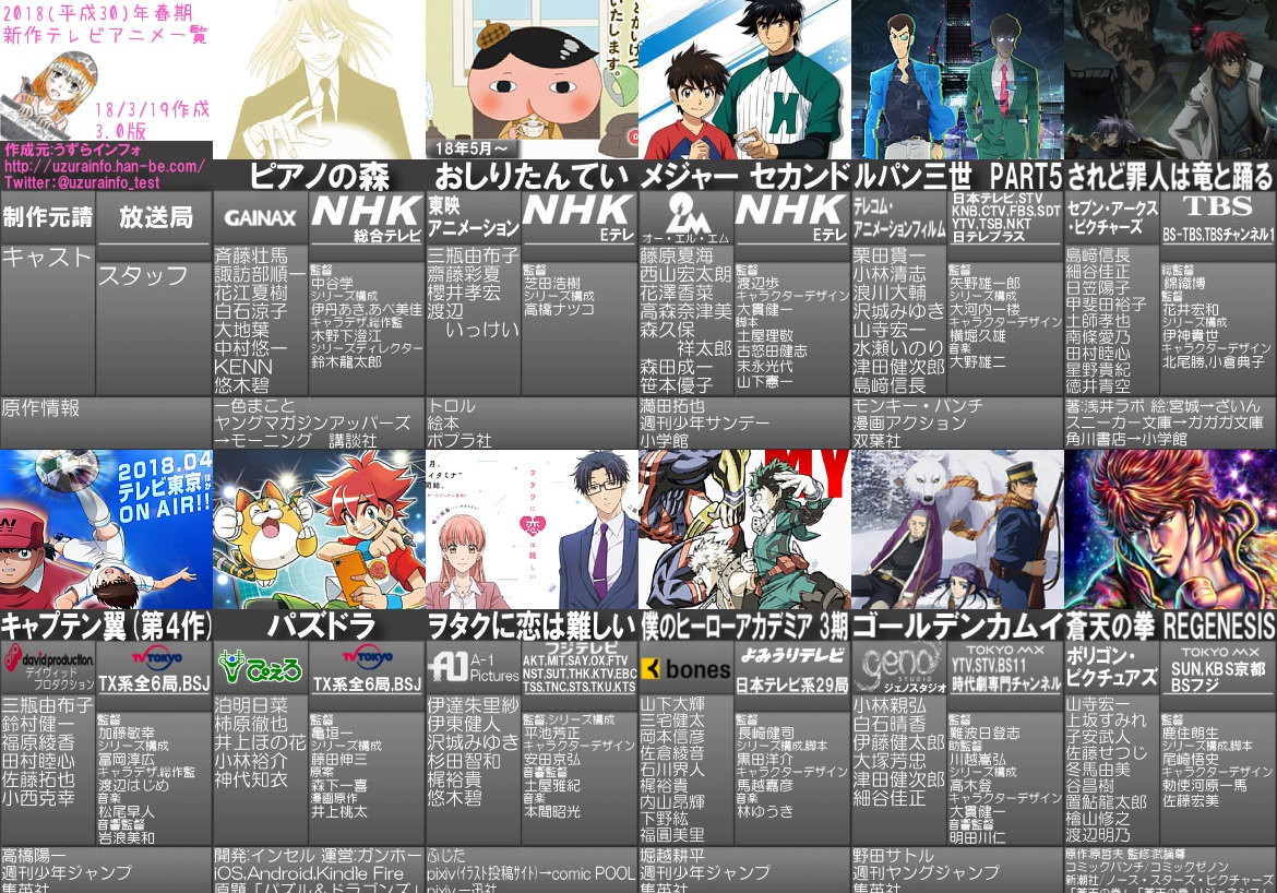 【画像】2018年春アニメ一覧が最新版に更新!続編モノや有名原作アニメなど安定感が高そう!!