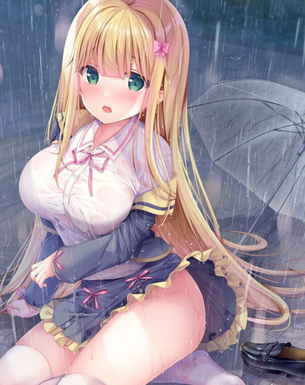 【画像】大雨の中、巨乳女子高生とぶつかってしまった