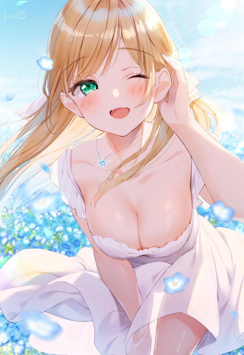 【画像】青いお花畑に巨乳の天使が・・・