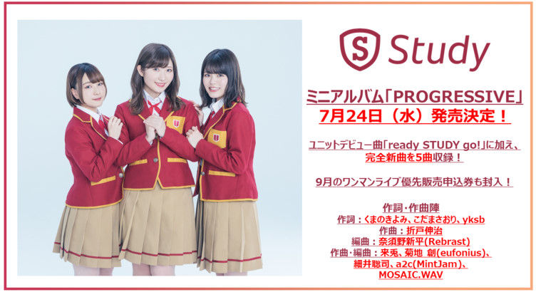 声優ユニット・Studyのミニアルバム「PROGRESSIVE」予約開始!7月24日発売!!!