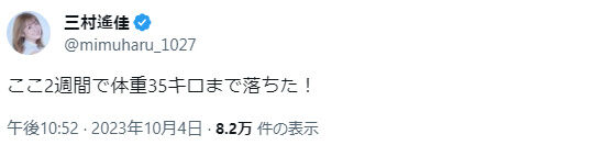 声優さん、体重が35㎏になってしまったことを報告